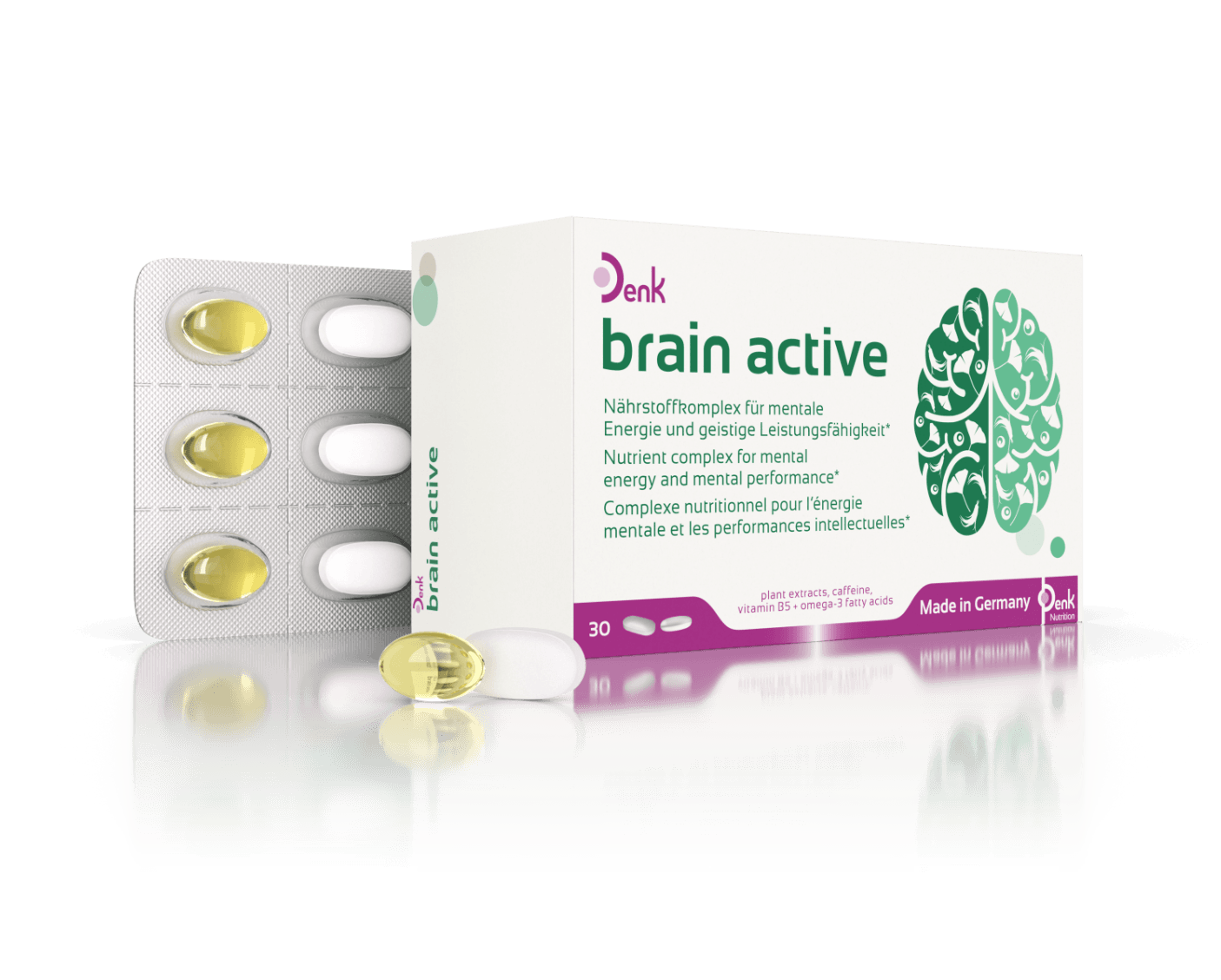 brain active Denk vereint wichtige Inhaltsstoffe für eine normale Gehirnfunktion und ist eine gute Nervennahrung zur Unterstützung der geistigen Leistungsfähigkeit.