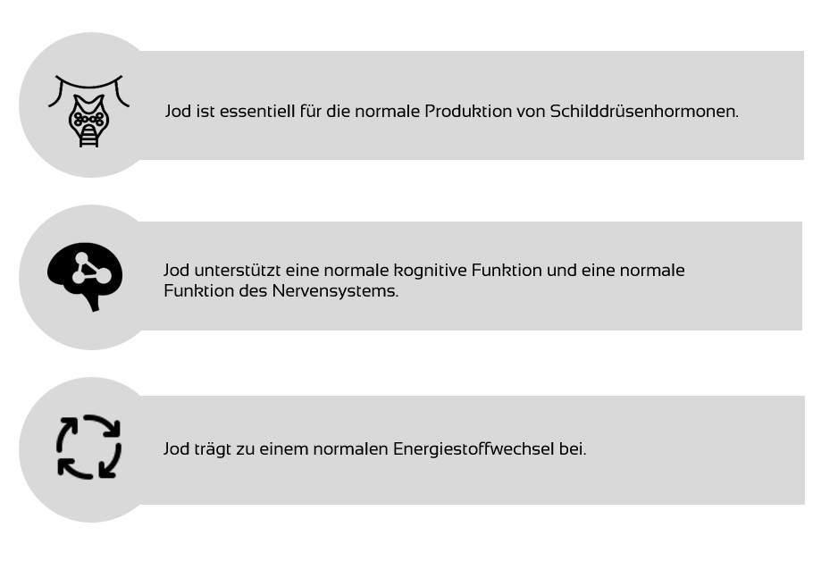 Jod ist ein lebenswichtiges essentielles Spurenelement und ein wesentlicher Bestandteil der Schilddrüsenhormone. Diese Hormone regulieren viele wichtige Prozesse im Körper wie den Energiestoffwechsel, die Knochenbildung und die Entwicklung des Gehirns. Laut Weltgesundheitsorganisation WHO sind immer noch mehr als 50 Länder weltweit unzureichend mit Jod versorgt. Viele Länder reichern daher ihr Speisesalz mit Jod an.